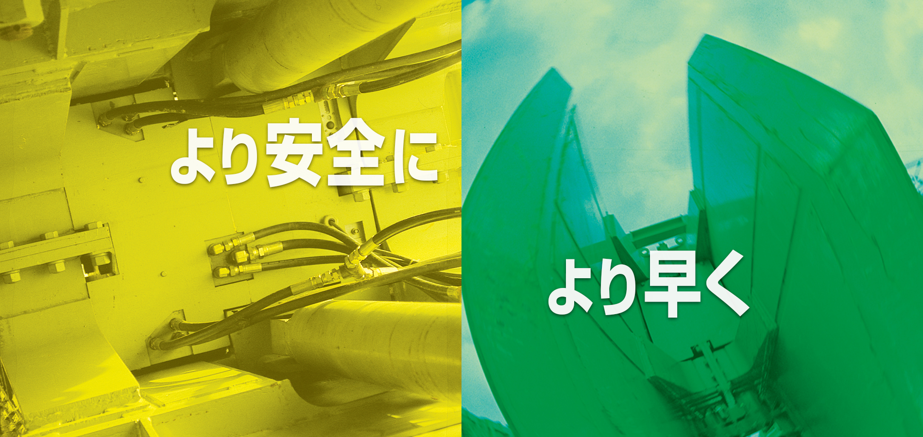 自降自昇システムにより、発進及び到達立坑を必要としないこと。が特徴です。