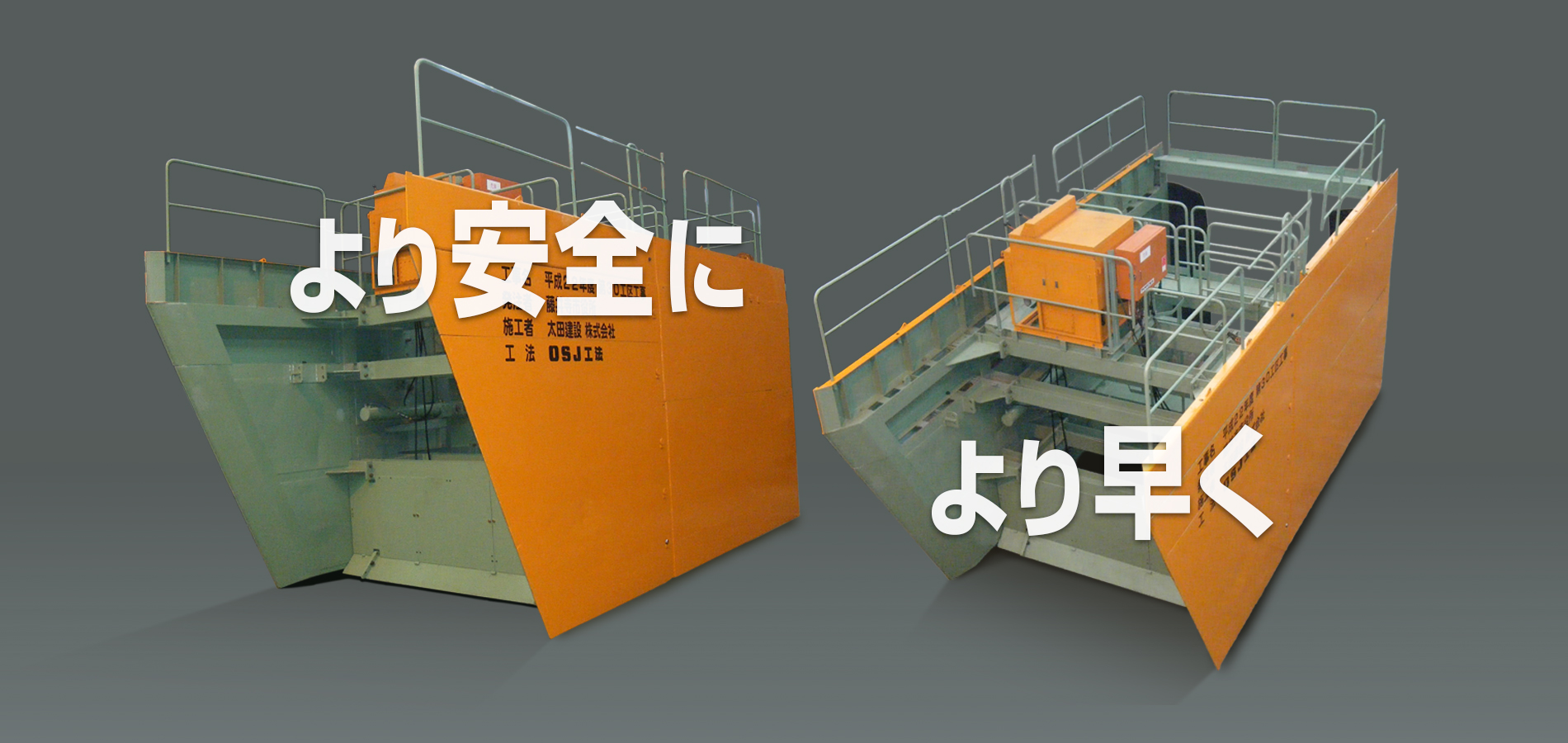 オープンシールド・ジャッキング工法とは、市街地等における管(函)渠・開渠の埋設工事において、オープンシールド機(OSJ機)で土留めを行いながら、掘削から埋戻しまでの一連作業を繰り返し、連続して行う開削シールド管(函)渠連続埋設工法です。